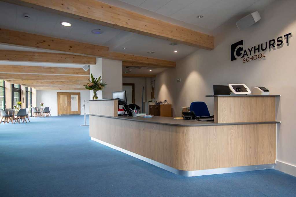 Morse Webb Architects’ new extension for Gayhurst School in Buckinghamshire has recently completed providing a new a sports hall, auditorium, staff area and dance block for the School. Externally a post and beam walkway formed of Larch glulam wraps around the building’s façade and leads to a bright, spacious new reception area formed of a Spruce glulam portal frame.