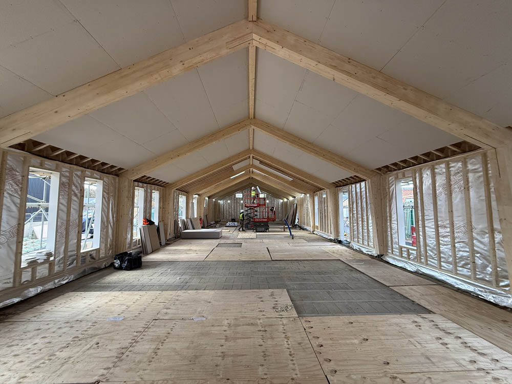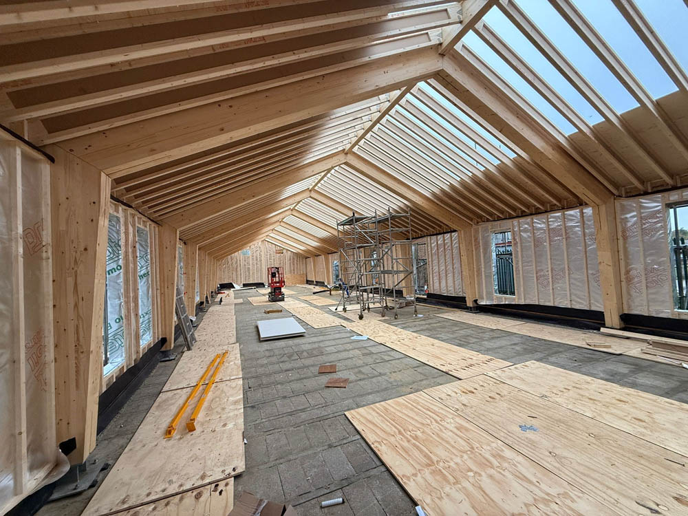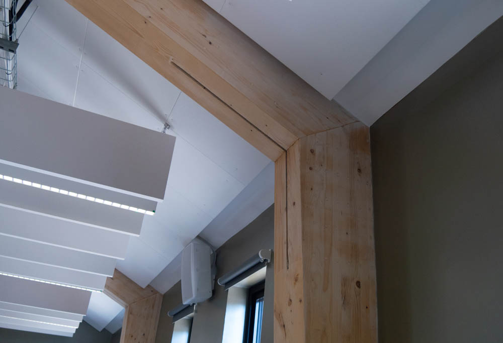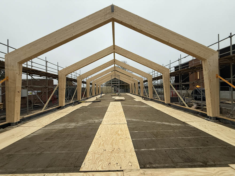 G-frame were responsible for the design, supply and installation of the glulam portal frame and timber infill panels that form the superstructure of the building.
