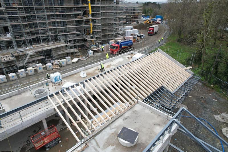 Shanganagh Creche in Dún Laoghaire forms part of Land Development Agency’s (LDA) first, and Ireland’s largest, social and affordable housing scheme which it is developing in partnership with Dún Laoghaire-Rathdown County Council. The scheme will deliver more than 500 homes with the majority built to passive house standard and will help meet Ireland’s demand for new homes by unlocking State land. Located within a historic landscape adjacent to Shanganagh Park, the scheme will feature a public square with an avenue leading to Shanganagh Castle. G-frame have worked closely with Walls Construction and O’Dwyer Steel to deliver the hybrid steel and mass timber structure.